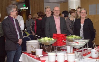 ![]() Ammattiosaston toimijoita paikallisilla neuvottelupäivillä, Sote-muutosseminaarissa Puijonsarvessa 20.-21.4.2016 |